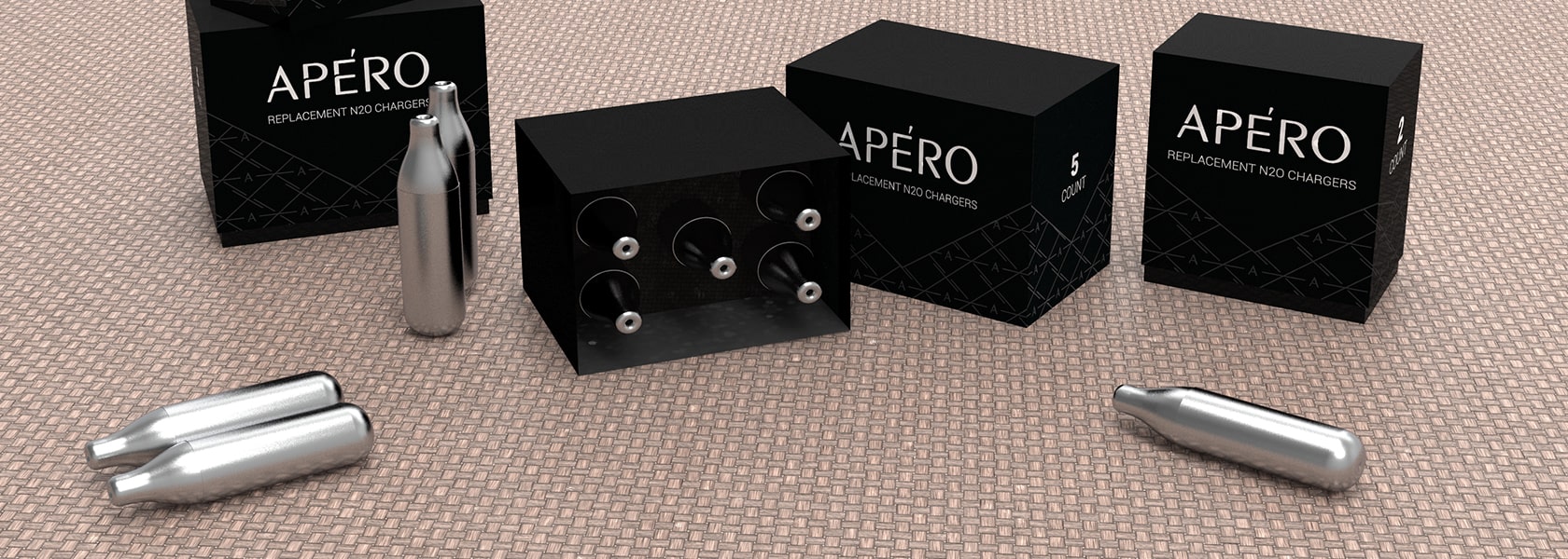 2 or 5 nitrous oxide N₂O replacement chargers for your APERO unit.