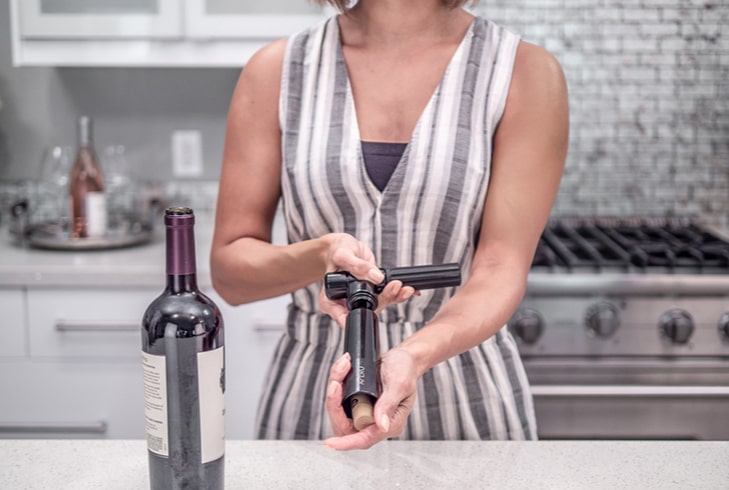 POWERED BY N₂O - With the press of a button, N₂O seamlessly pushes the cork out from inside.